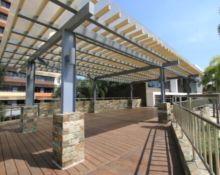Find ease and leisure amidst the hustle and bustle of city life in an open recreational deck.